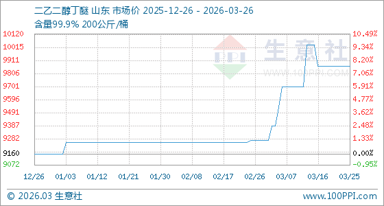 3月26日生意社二乙二醇丁醚基准价为9866.67元/吨