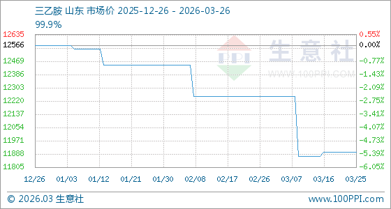 3月26日生意社三乙胺基准价为11900.00元/吨
