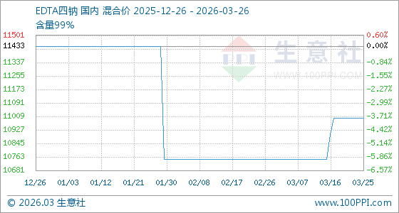 3月26日生意社EDTA四钠基准价为11000.00元/吨