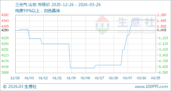 3月26日生意社三光气基准价为4350.00元/吨