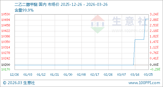 3月26日,生意社二乙二醇甲醚基准价为10500.00元/吨,与本月初(10200.00元/吨)相比,上涨了2.94%。