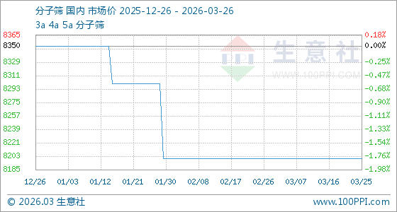 3月26日,生意社分子筛基准价为8200.00元/吨,与本月初持平。