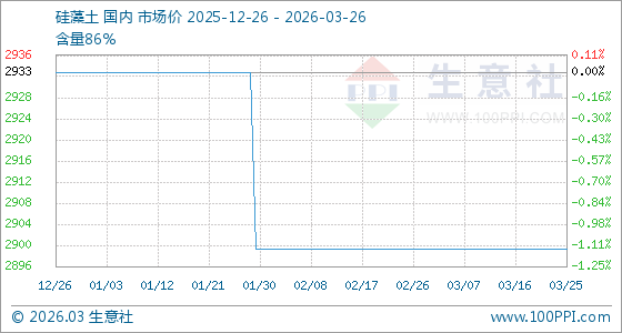 3月26日生意社硅藻土基准价为2900.00元/吨