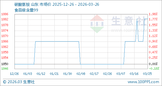 3月26日生意社碳酸氢铵基准价为1883.33元/吨