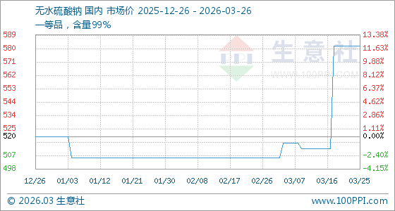 3月26日生意社无水硫酸钠基准价为582.00元/吨