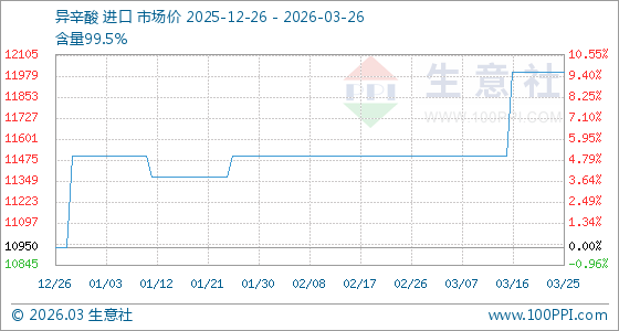 3月26日生意社异辛酸基准价为12000.00元/吨