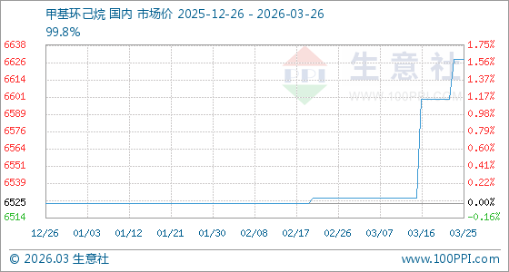 3月26日生意社甲基环己烷基准价为6628.57元/吨