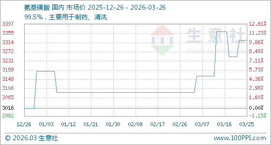 3月26日生意社氨基磺酸基准价为3325.00元/吨