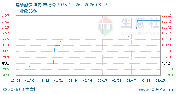3月26日生意社焦磷酸钠基准价为8766.67元/吨