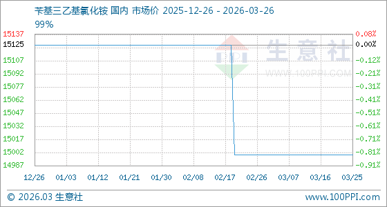 3月26日生意社苄基三乙基氯化铵基准价为15000.00元/吨