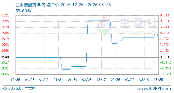 3月26日生意社三水醋酸钠基准价为2010.00元/吨