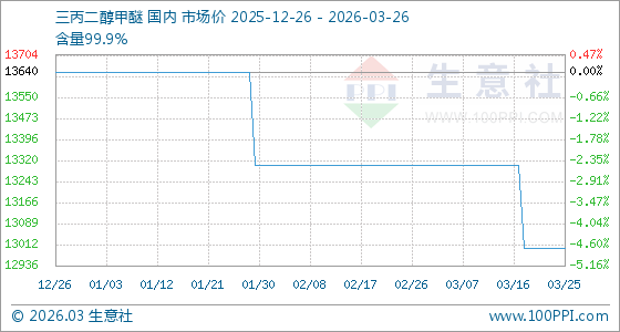 3月26日生意社三丙二醇甲醚基准价为13000.00元/吨