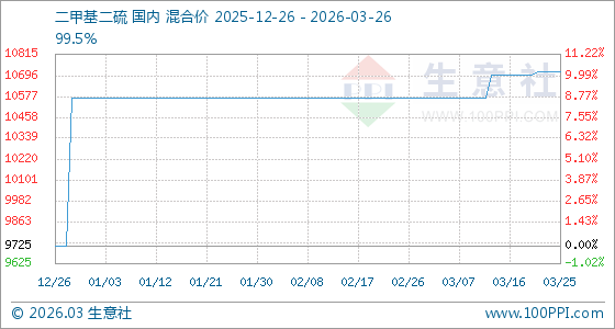 3月26日生意社二甲基二硫基准价为10716.67元/吨