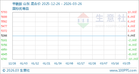 3月26日,生意社甲酰胺基准价为5266.67元/吨,与本月初持平。