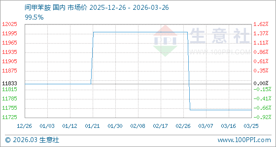 3月26日生意社间甲苯胺基准价为11750.00元/吨