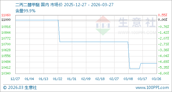 3月27日生意社二丙二醇甲醚基准价为10466.67元/吨