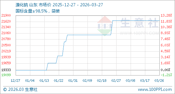 3月27日生意社溴化钠基准价为21666.67元/吨