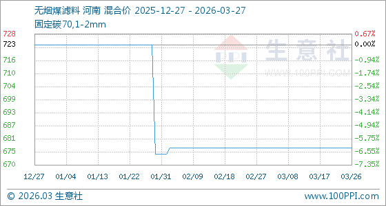 3月27日生意社无烟煤滤料基准价为677.50元/吨