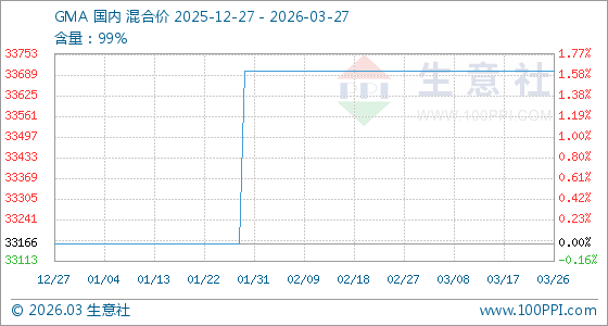 3月27日,生意社GMA基准价为33700.00元/吨,与本月初持平。