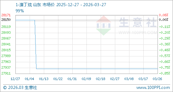 3月27日,生意社1-溴丁烷基准价为27933.33元/吨,与本月初持平。