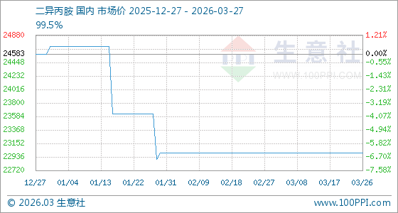 3月27日,生意社二异丙胺基准价为23000.00元/吨,与本月初持平。