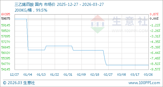 3月27日生意社三乙烯四胺基准价为54666.67元/吨
