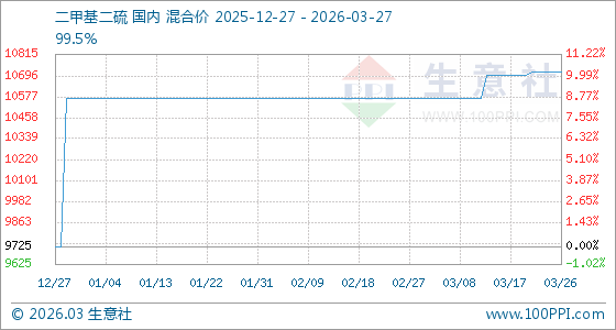 3月27日生意社二甲基二硫基准价为10716.67元/吨