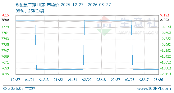 3月27日生意社磷酸氢二钾基准价为7650.00元/吨
