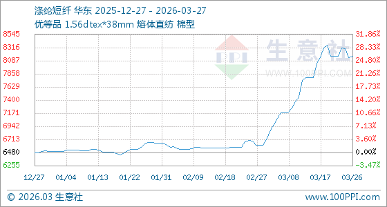 3月27日生意社涤纶短纤基准价为8169.83元/吨