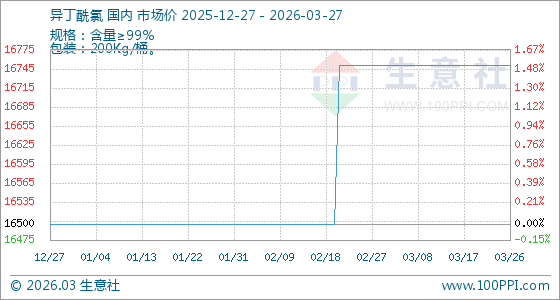 3月27日,生意社异丁酰氯基准价为16750.00元/吨,与本月初持平。