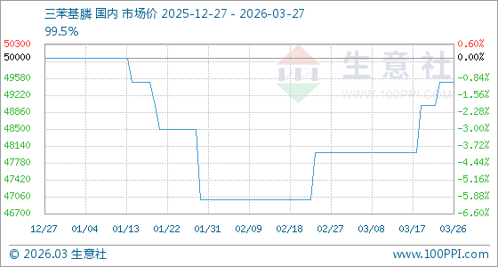 3月27日生意社三苯基膦基准价为49500.00元/吨