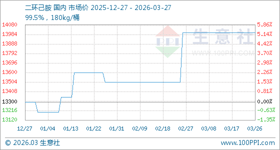 3月27日生意社二环己胺基准价为14000.00元/吨