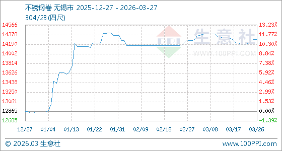 3月27日生意社不锈钢卷基准价为14287.50元/吨