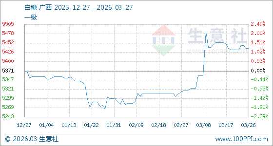 3月27日生意社白糖基准价为5436.67元/吨