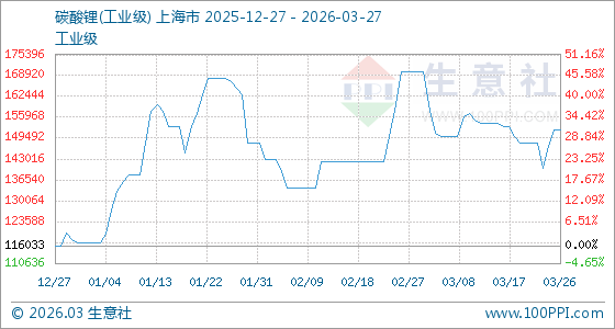 3月27日生意社碳酸锂(工业级)基准价为152000.00元/吨