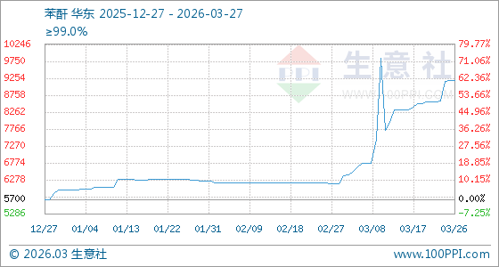 3月27日生意社苯酐基准价为9183.33元/吨