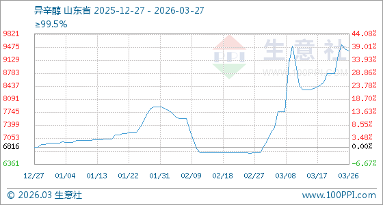 3月27日生意社异辛醇基准价为9366.67元/吨
