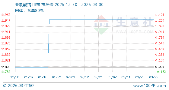 3月30日,生意社亚氯酸钠基准价为11950.00元/吨,与本月初持平。