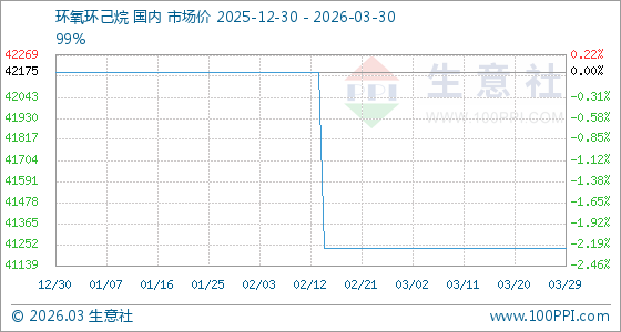 3月30日生意社环氧环己烷基准价为41233.33元/吨