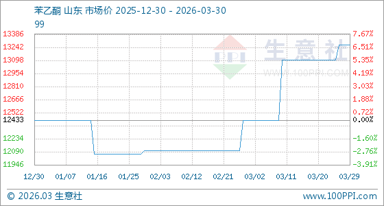 3月30日生意社苯乙酮基准价为13266.67元/吨
