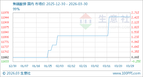 3月30日生意社焦磷酸钾基准价为11950.00元/吨