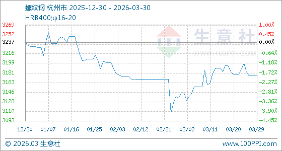 3月30日生意社螺纹钢基准价为3177.16元/吨