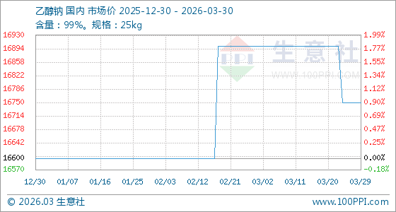3月30日生意社乙醇钠基准价为16750.00元/吨