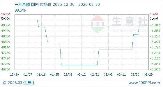 3月30日生意社三苯基膦基准价为49500.00元/吨