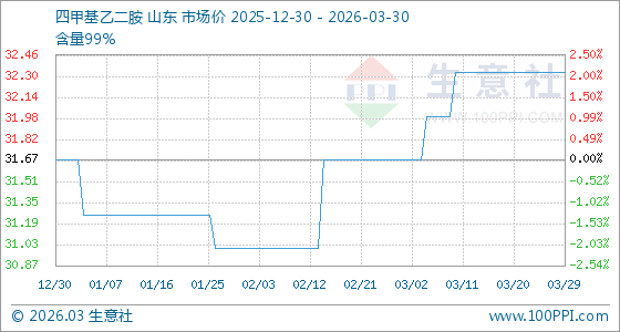 3月30日生意社四甲基乙二胺基准价为32.33元/千克
