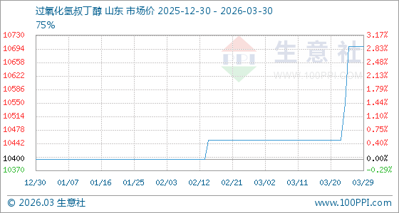 3月30日生意社过氧化氢叔丁醇基准价为10700.00元/吨