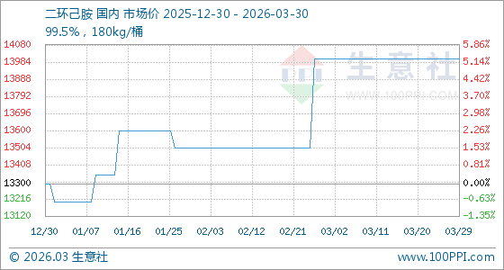 3月30日生意社二环己胺基准价为14000.00元/吨