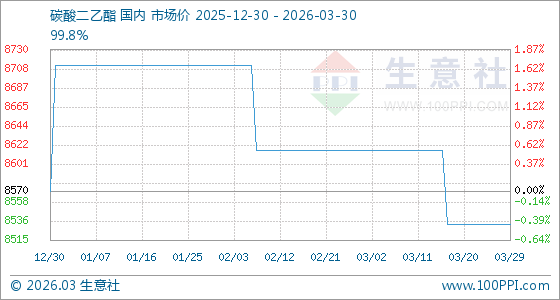 3月30日生意社碳酸二乙酯基准价为8533.33元/吨