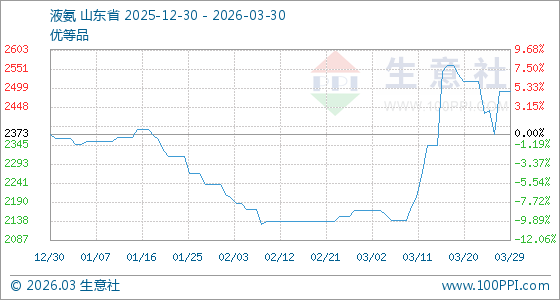 3月30日生意社液氨基准价为2490.00元/吨