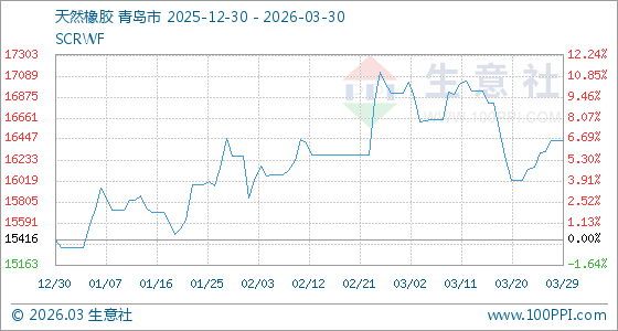3月30日生意社天然橡胶基准价为16425.00元/吨